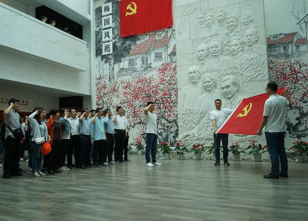 在梅園風(fēng)范前,黨員同志們面向鮮紅莊嚴(yán)的黨旗集體重溫了入黨誓詞,時(shí)刻不忘革命先烈,時(shí)刻不忘一名共產(chǎn)黨員的崇高信念,永葆黨員的先進(jìn)性。